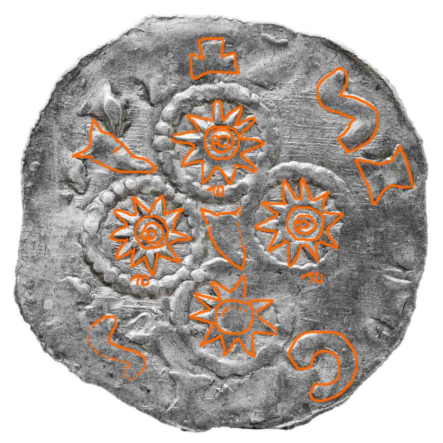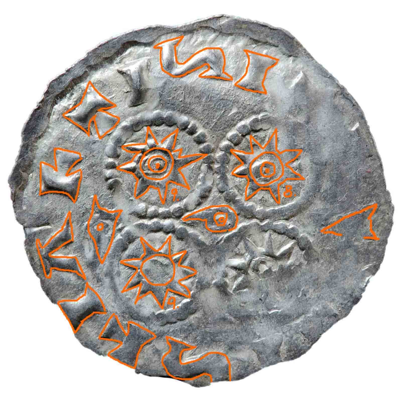 Zusammengefasst kann man sagen, dass diese Pfennige allesamt sehr unterschiedlich sind, sowohl was die Trugschrift betrifft als auch die Sterne in den vier Perlkreisen. Jene um einen Kreis nach außen zeigenden Sterne weisen eine differierende Menge zwischen 9 und 12 Zacken auf! Die Anzahl kann teilweise auch auf einer einzigen Münze unterschiedlich sein. Deshalb kann hier von keinem System ausgegangen werden. Der Stempelschneider machte höchstwahrscheinlich genau so viele Zacken, wie sich ausgegangen sind?