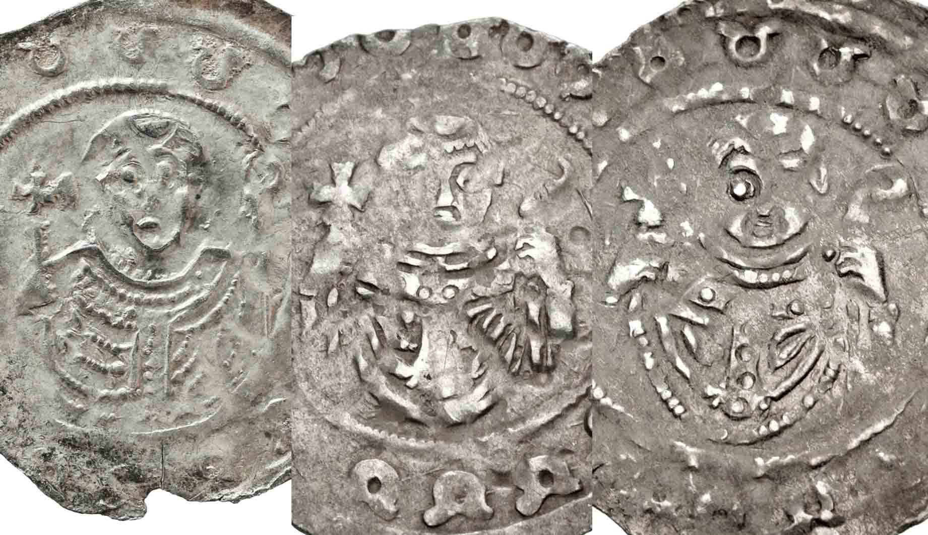 kann ich nur sagen, dass diese Hufeisen (oder Omega) zusammen mit "V", "Y" und "+" häufig verwendete Beizeichen außerhalb der Perlkreise in den drei Münzstätten von Ostösterreich im 12. Jahrhundert (Krems, Neunkirchen und auch Fischau) waren.