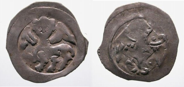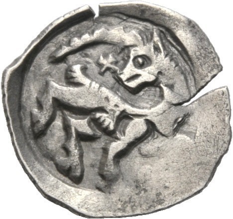 Ich habe in meinem "Stall" zwei hübsche Exemplare stehen, die ich euch gerne zeigen will. Das erste ist der B179, aus der Zeit Ottokars II. (1251-1276), Münzstätte Enns. Es hat als Besonderheit ein Kreuzchen auf der Nase. Das 2. Einhorn ist auf einem der seltenen österreichischen Brakteaten zu finden: Cc 28, Münzstätte Völkermarkt, ebenfalls aus der Zeit Ottokars, der ja zu seinem böhmisch-österreichischme Großreich auch Kärnten geerbt hat. Wahrscheinlich war er es, der die Brakteatenprägung in der Steiermark eingeführt hat. Bei der Bevölkerung waren diese Münzplättchen nicht sonderlich beliebt und sind daher auch bald wieder verschwunden.