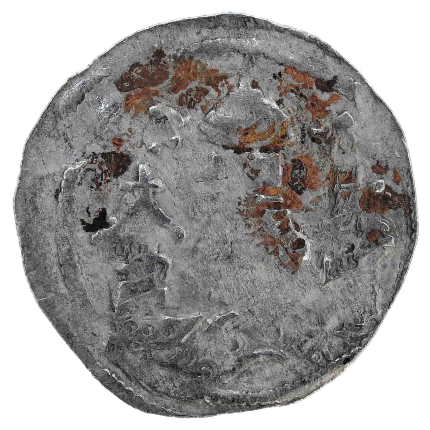 Die Kopfseite zeigt ein detailreiches und bärtiges Bischofsbrustbild von vorne, mit Mitra und den Stab in der Rechten. In der Linken ein Buch, darüber eine Rosette als Beizeichen. Zwischen zwei Perlkreisen befinden sich Ringel °°°°° statt einer Umschrift.