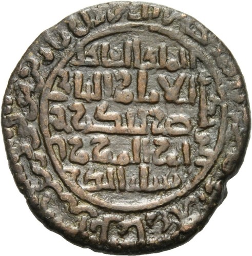 Artuqids of Mardin, Husam al-Din Yuluq Arslan (580-597 AH /1184-1201 AD), AE Dirhem 589 AH, citing Abbasid caliph An-Nasir as overlord. Rv. Three lined legend in center: al-Imam an-Na / sir lid-din / amir al Mu'minim. Legend in circle: Husam al-Din Malik Diyar Bakr Yuluq Arslan bn Il Gazi ibn Artuq sana 589. Mitchiner WOI 1039.; Henneqin 1118 ff; S/S 35.2