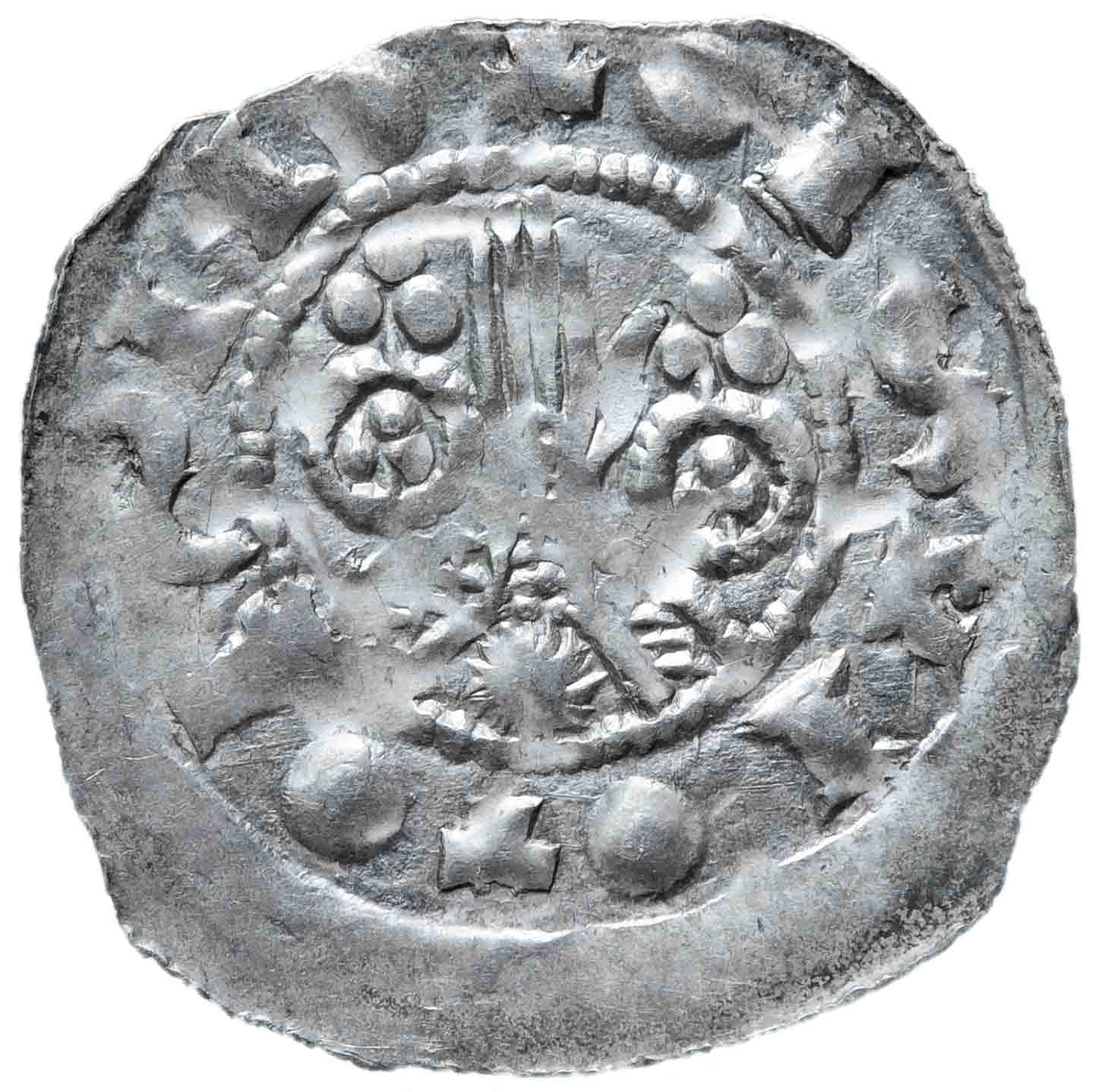 könnte durchaus als Vorbild für deinen Pfennig gedient haben? Die zeitliche Einordnung dieses Denars würde nur wenige Jahre vor der (von mir sehr hypothetisch geschätzten) Datierung deines Dünnpfennigs liegen, falls man das Stück der Prägestätte Neunkirchen zuordnen würde.