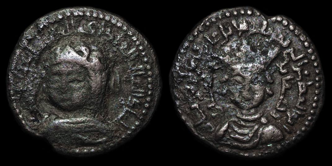 Der folgende Dirhem aus Mardin gehört zu den bekannteren Prägungen der Artuqiden, jedoch sind die Portraits der Bildseite - wohl aufgrund der hohen Reliefs - oft nicht mehr gut zu erkennen. Das abgebildete Stück ist da eher eine Ausnahme.