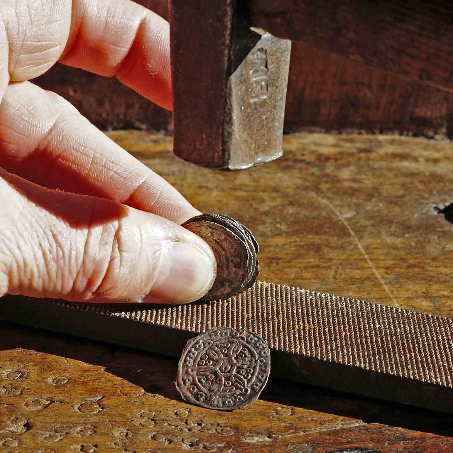 Mit Bildern vo MA-Feilen kann ich dienen. Sie sehen eigentlich genau so aus wie heutige Feilen, aber eine Besonderheit habe ich entdeckt: die Perlfeile. Sie wurde zur Formung von Perlen oder Perlenschnüren aus Gold- oder Silberdraht hergestellt. Ich könnte mir vorstellen, dass man dieses Gerät auch zum Schlagen (Feilen) der Münzränder verwendet hat.