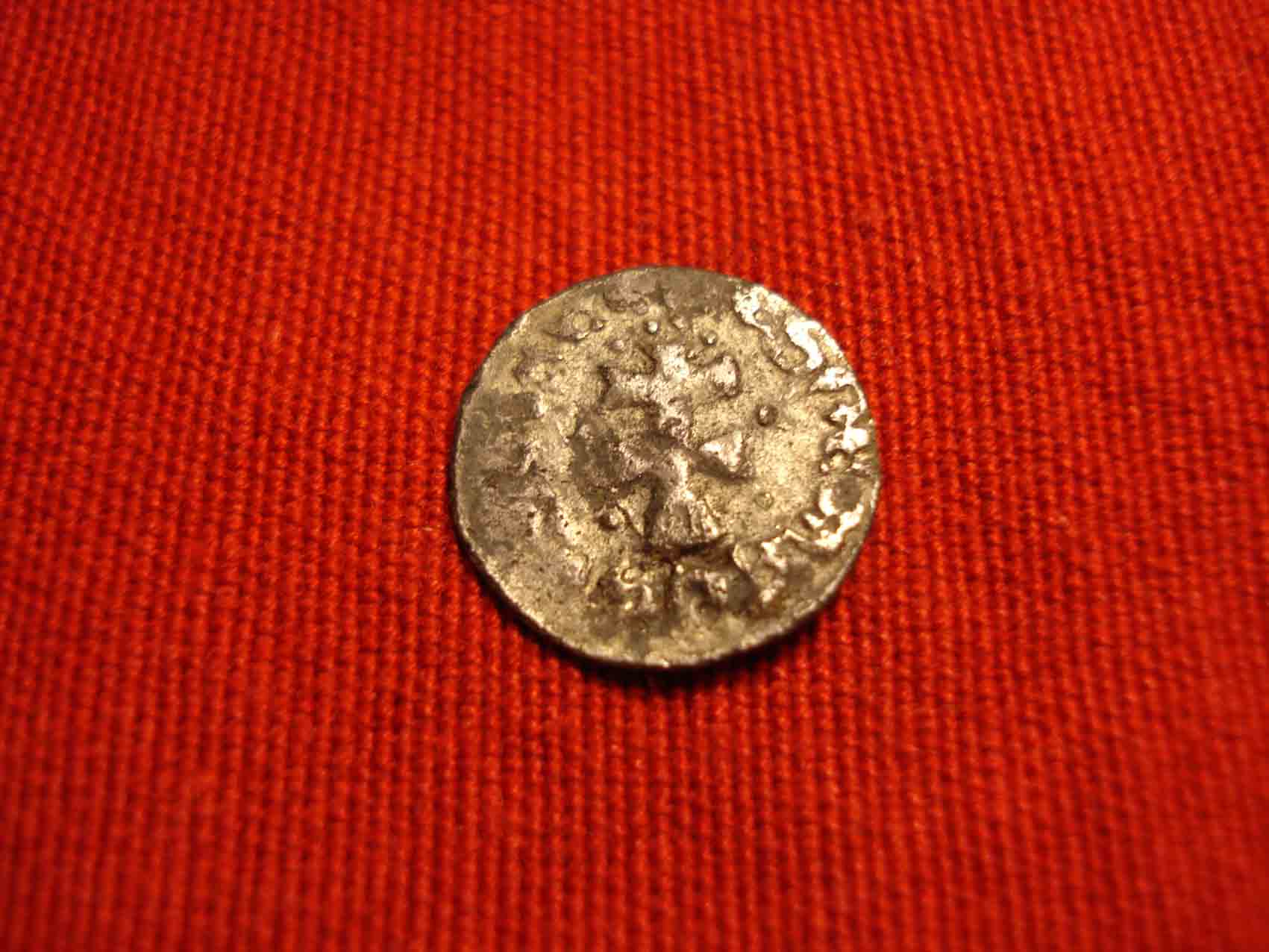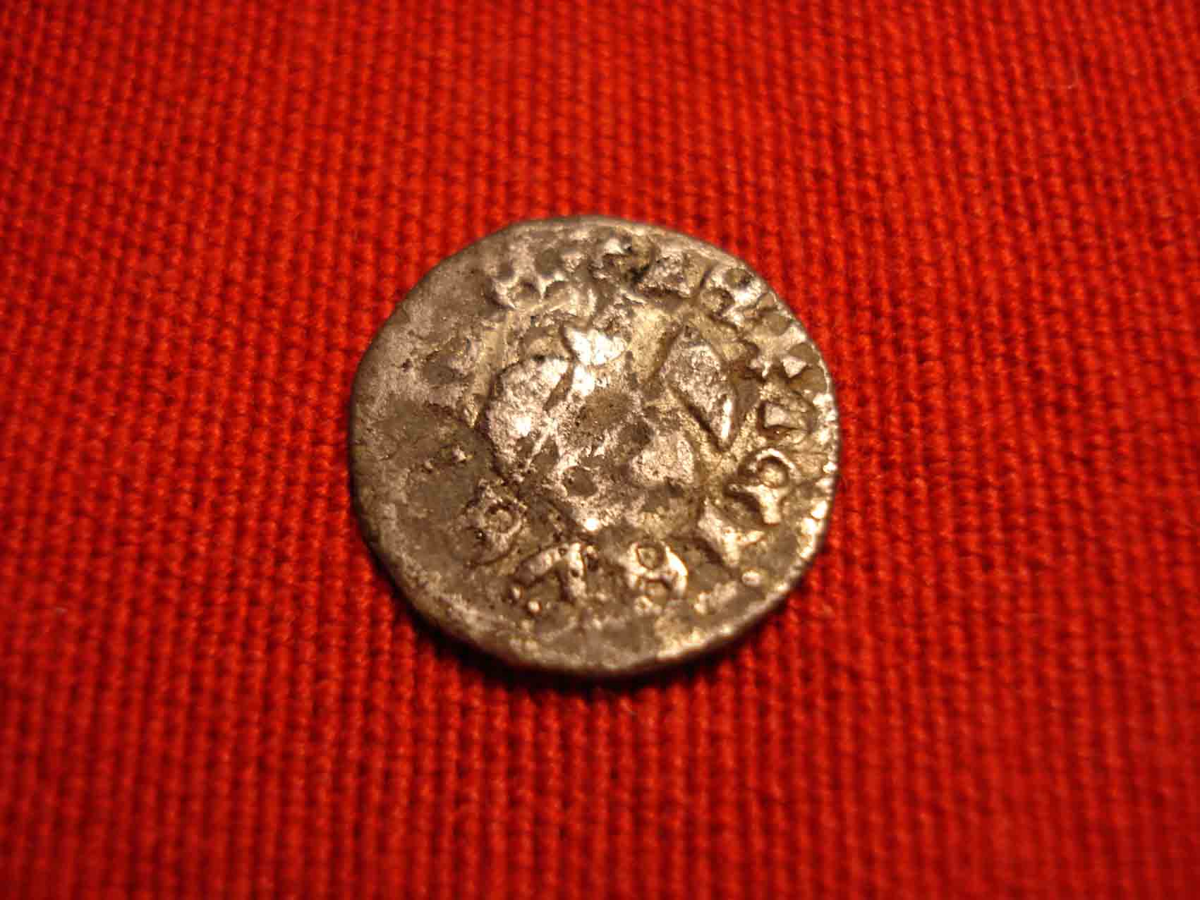 Also Marc, das ist schon ein eigenartiges Stück. Es scheint aus Brandresten zu stammen. Die Anordnung der Buchstaben ist seltsam. Wurde die Münze vielleicht überprägt? Kannst Du auf dem Original die Buchstaben entziffern?
