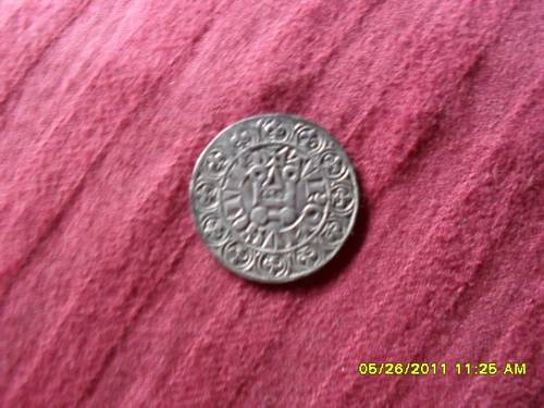 Ungefähr dies steht auf den Tournosen (falls Deine Münzen auch eine zweite Seite haben ;) ):