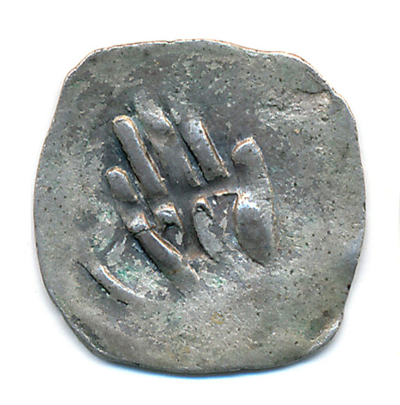Handheller ohne JahrAv. Plastische Abbildung einer geöffneten rechten Hand im Kreis. In der Handfläche das Beizeichen „V“.