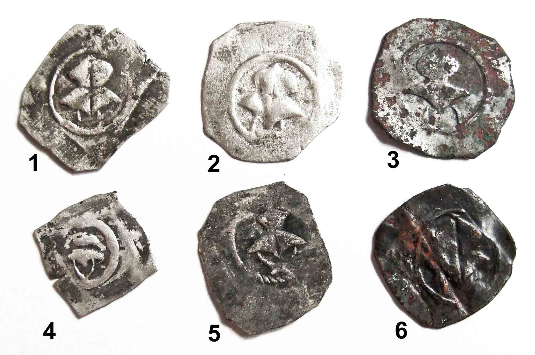 Liebe Freunde des Mittelalters, Dein Pfennig Nr. 4 ist ein Hälbling. Beierlein erwähnt unter Nr. 134 einseitige Hälblinge mit Vierschlag) aus Landshut. Im Anhang ein typischer hübscher Hälbling, 0,19 g. Die Hälblinge dieser Zeit sind quadratisch und der Vierschlag ist (hier auf der Vorderseite) kleiner als bei Pfennigen. Jetonicus