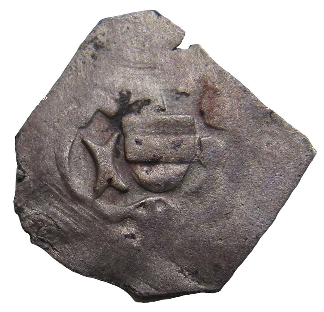 und dann der Pfennig (siehe obere Abb.), F mit dreieckigem Mittelbalken, R und I in eleganten, nicht Grazer Formen, im unteren Winkel des Dreipasses ein gotisches Blatt, davon sind 3 Ex. bekannt.