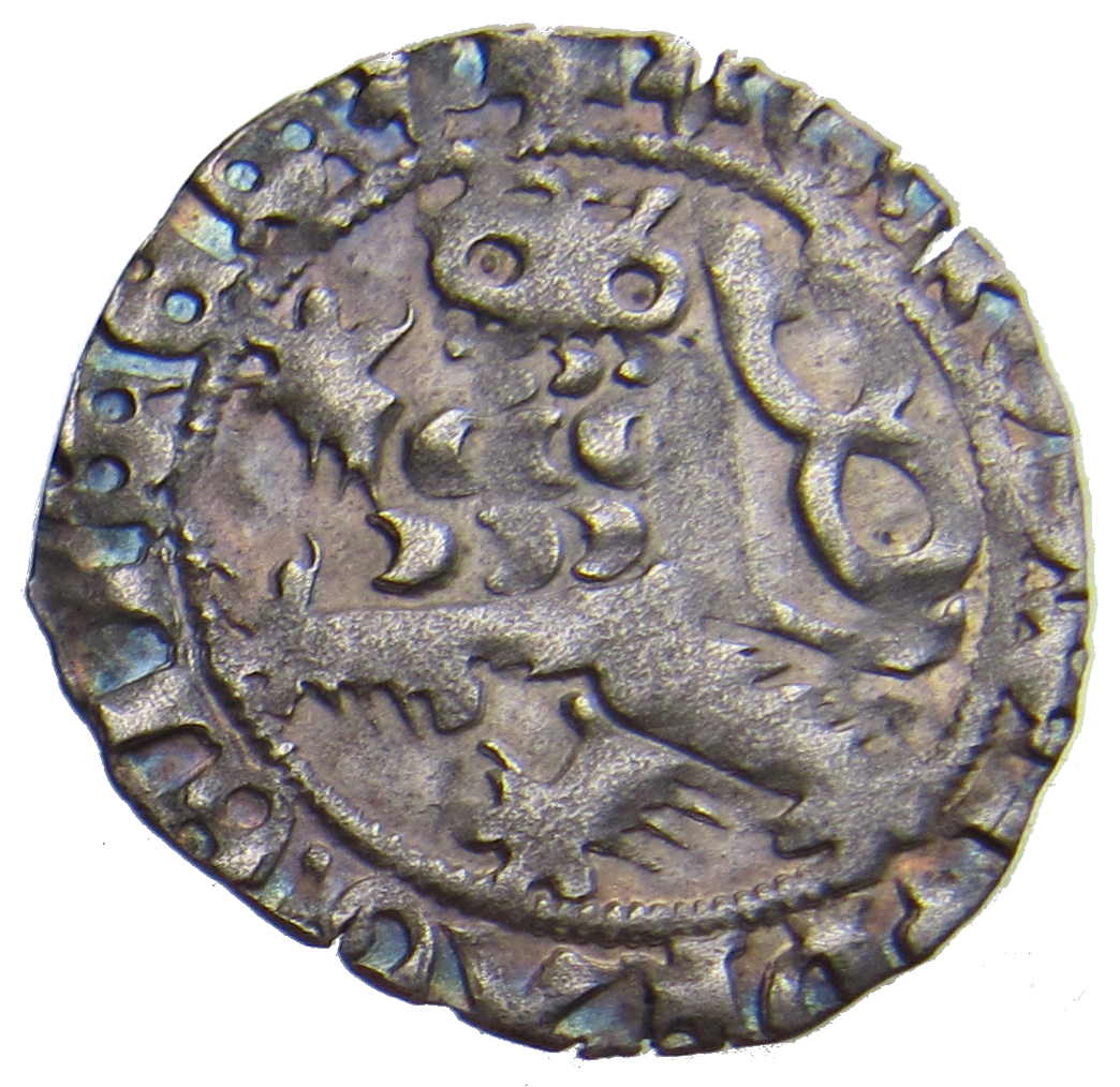 Der Kopf des Löwen ist, wie bei allen Prager Groschen und Pfennigen, nach links gerichtet.