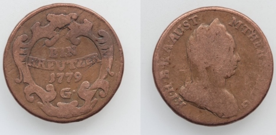 Ich stelle Euch heute eine Münze aus der Zeit Maria Theresias vor, die einen interessanten geschichtlichen Hintergund hat. An sich ist es ein normaler Kreuzer der Münzstätte Günzburg (G) von 1779. In diesem Jahr wurde der Bayerische Erbfolgekrieg beendet und nach den Bestimmungen des Friedens von Teschen musste Bayern das Innviertel an Österreich abtreten. Maria Theresia ließ das umlaufende bayerische Geld gegen österreichisches umtauschen und zu diesem Zweck in Günzburg 1,200.000 Kupferkreuzer im Wert von 5.500 Gulden prägen, die per Schiff ins Innviertel transportiert wurden. Die neuen Kreuzer wurden gut angenommen, obwohl in Bayeren damals (neben kupfernen Pfennigen und Zweiern) noch Silberkreuzer umliefen. Ich besitze 2 Kreuzer von 1779 G, einen sehr schönen der leider zu scharf gereinigt wurde und einen eher abgenützten, dafür mit schöner Patina.