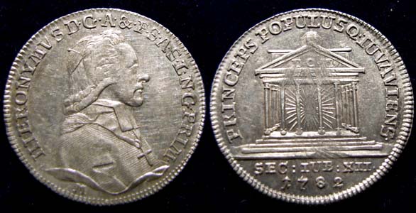 Hmm, es behaupten einige Quellen, dass Graf von Colloredo einer der rund 1500 ermittelten Mitglieder des Illuminatenordens gewesen sei ... wie weit das zutreffend ist und welche Theorie der Historiker als haltbar angesehen werden kann, das entzieht sich dem interessierten Laien (so wie mir), jedoch gefällt mir der Gedanke sehr gut, dass ein hochrangiger Fürst des Bischofs von Rom ein aufklärerischer Unterwanderer des damaligen Systems gewesen sein könnte ... however, eine feine Münze aus einer spannenden Zeit ...