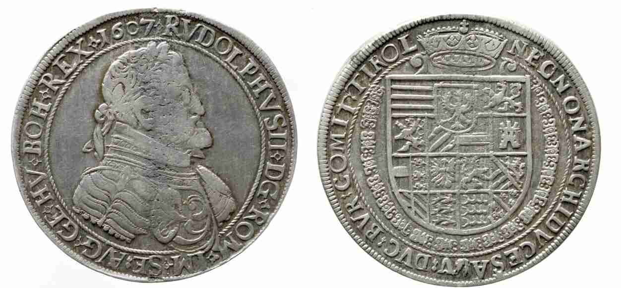 Ich fang einmal mit einem schönen Taler unter Kaiser Rudolph II (1552 – 1612), geprägt 1607 in Hall an.