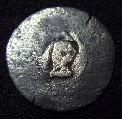Rs Gegenstempel mit gotischem Buchstaben P ? Maße 17mm Durchmesser- Gewicht 0,7 Gramm- Material, vermutlich Messing.
