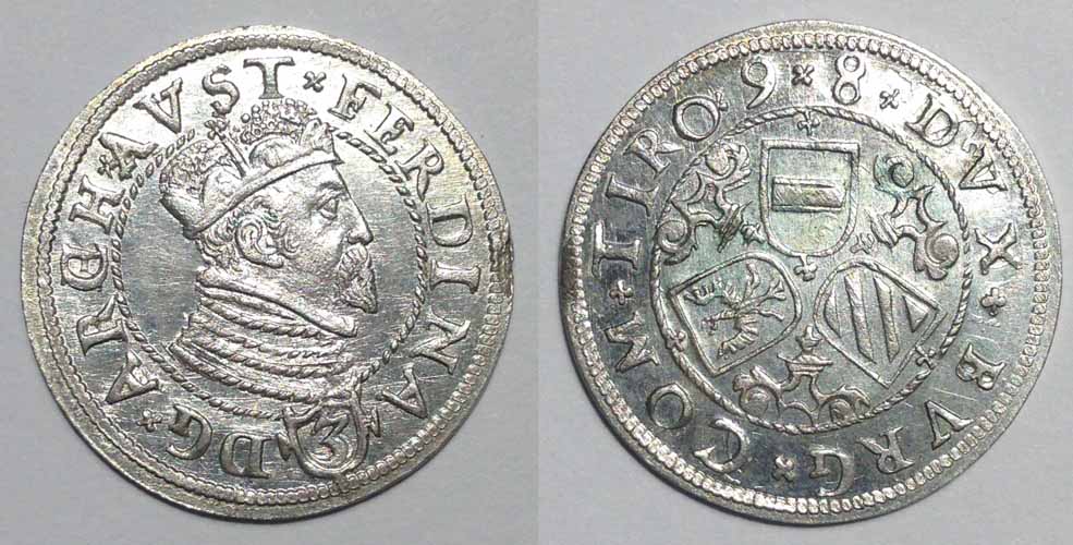 (in Tirol und den Vorlanden) unter Erzherzog Ferdinand (II.) 1564-1595/1602(04)" findet sich unter typennr. 15 c ein groschen (nach 1585) mit ähnlich aussergewöhnlichem stempelschnitt UND den Xerln. allerdings ohne jahr.