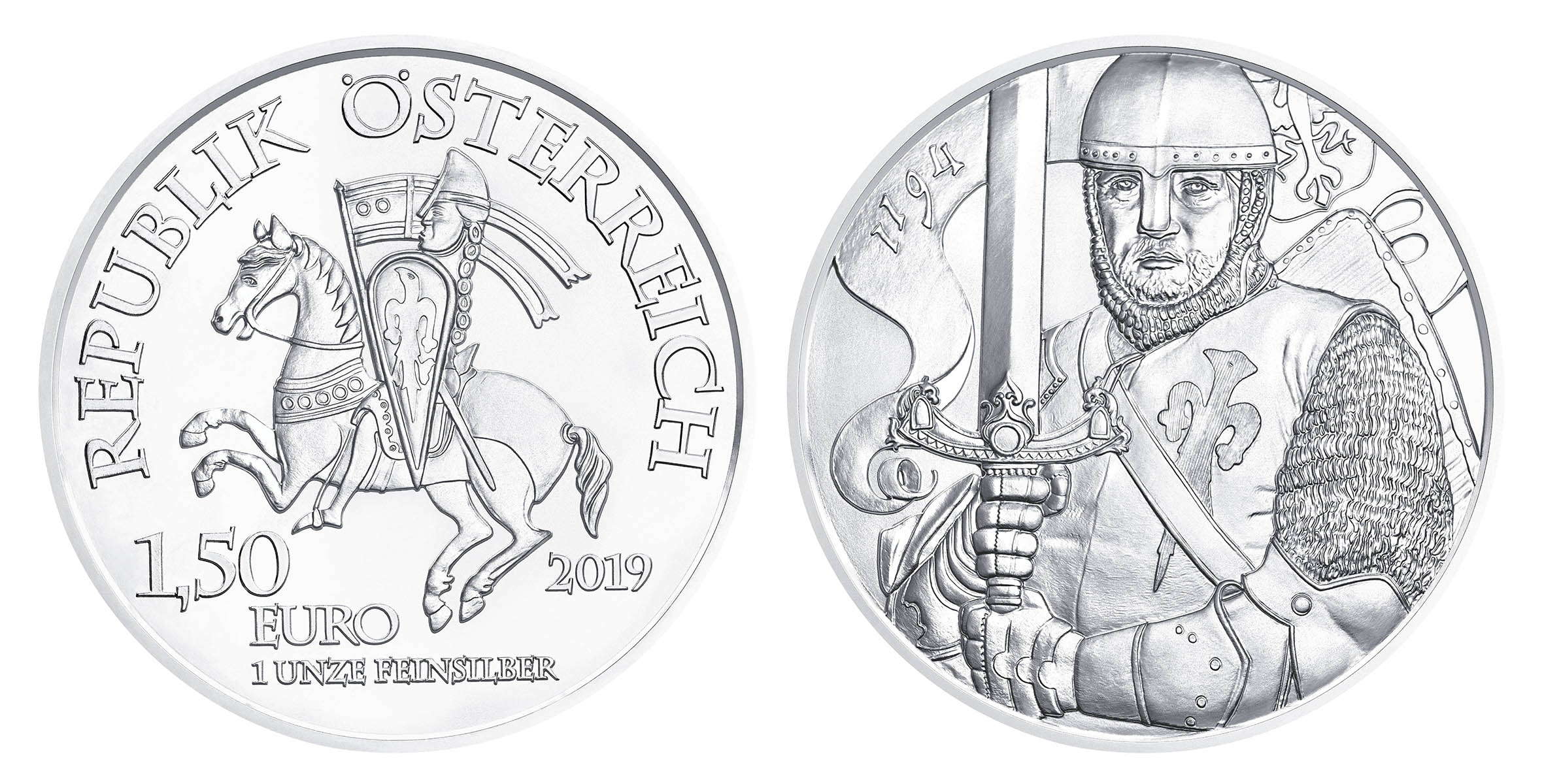 Im Speziellen feiern wir die 825 Jahre mit drei Jubiläumsunzen aus Silber! Diese machen den Gründungsmythos der Münze Wien greifbar und erzählen eine packende Geschichte: In der Gegenwart des Jahres 1191, nach der Einnahme der Stadt Akkon, kam es zwischen zwei Kreuzfahrern, Leopold V. und dem englischen König Richard Löwenherz, zum Streit um die Beute. Im Dezember 1192 wurde Richard auf der Rückreise nach England in Erdberg, damals ein Vorort von Wien, festgenommen. Schließlich wurden Leopolds Lösegeldforderungen erfüllt. Die immense Menge Silber, die dem englischen Volk abgenötigt worden war, führte zur Entstehung der Legende von Robin Hood. Leopold verwendete diesen Silberschatz dazu, Wiener Neustadt und die erste Wiener Prägestätte zu gründen. 1 Unze Silber Technische Details Nennwert: 1,5 Euro Durchmesser: 37 mm Material: Ag 999 Feingewicht: 31,07 g Erstprägemenge je: 100.000 Stück Die 1 Unze Silber (Leopold V, Wiener Neustadt, Robin Hood) wird in Tubes zu je 20 Stück verpackt. Dieses Produkt kann aber ebenso einzeln in einem Miniblister bezogen werden. Erstausgabetag: Mittwoch 23. Jänner 2019 „Leopold V.“ Dazu passend das Sammelalbum „Mit Kettenhemd und Schwert“: Ein historisch zuverlässiger und spannend illustrierter Guide durchs finstere wie auch durchs lichte Mittelalter. Fakten zum Staunen und detailliertes Geschichtswissen lesenswert aufbereitet. Das Beste aber: