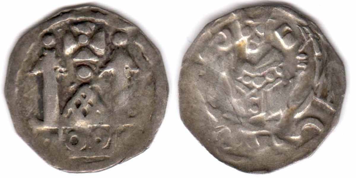 Hallo Bernhard, beide sind keine Kreuzer (die gab es damals in Baiern und Kärnten noch nicht), sondern Pfennige. Die zweite Münze ist ein Friesacher Pfennig von Erzbischof Adalbert. CNA C a 9 ca. 1190 - 1200: Av.: Domfassade, oben Kreuz mit Punkt (frühester Typ), Rv.: Erzbischof mit Krummstab und Buch Legende: ERIACENSIS retrograd, das E ist bei 3 h schwach zu sehen, das I ist bei 6 h gut zu sehen. Das Stück ist beschnitten Freundliche Grüße von Jetonicus |