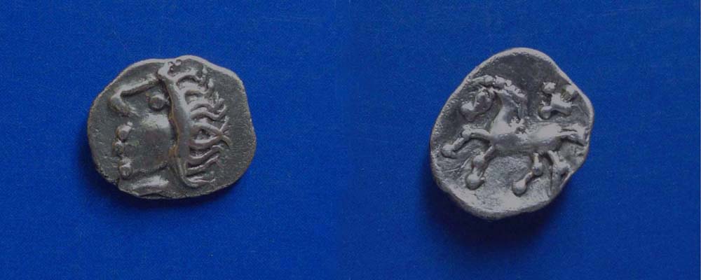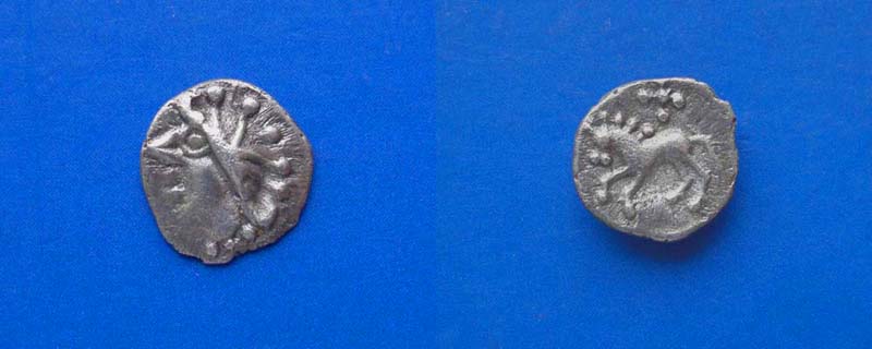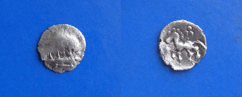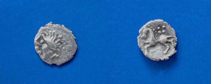 charakteristisch ist aber das Beizeichen unter dem Pferd, welches eine große Ähnlichkeit zu einem spätkeltischen Reitersporn aufweist.