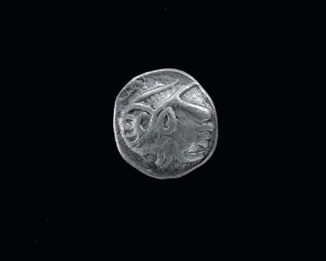 Der Avers mit dem behelmten Athenakopf dürfe ein Abschlag eines Stempels der boischen Goldprägung sein.