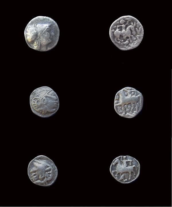 (Vogelreiter) und der Boier mit dem behelmten Athenakopf dar.