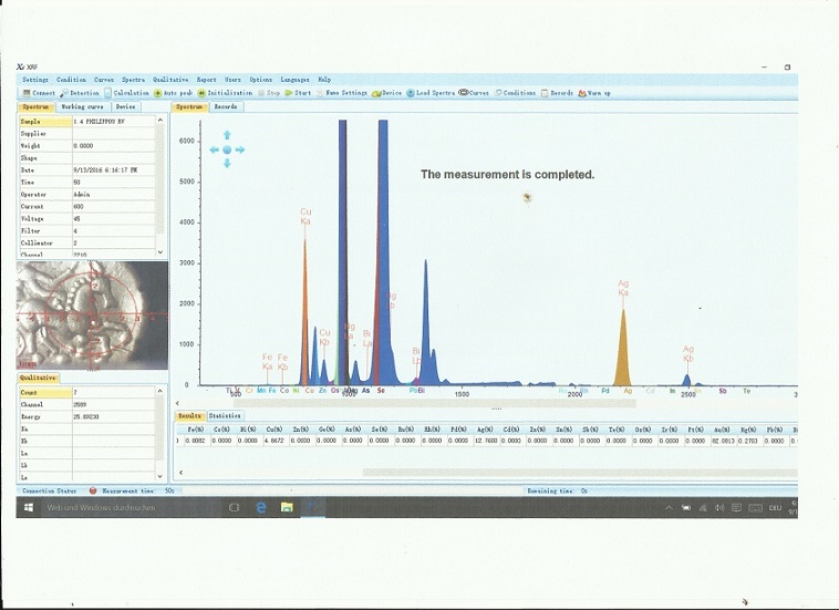 Vor ca.einem Jahr habe ich eine Metallanalyse von der oben gezeigten Münze machen lassen.