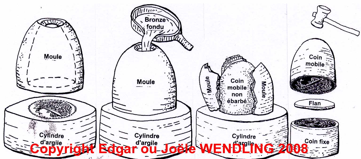 Dateikommentar: 1. und 2. Phase der Herstellung eines keltischen Münzstempels