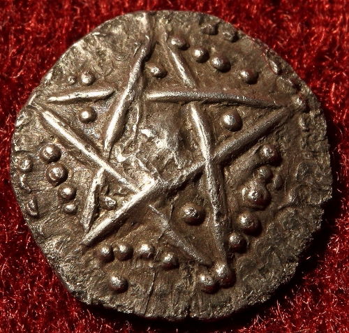 http://www.sixbid.com/browse.html?auction=886&category=18482&lot=840442Gibt es eigentlich eine Konvention, wie das merkwürdige Mond-bis-E-förmige Zeichen im Pentagramm beim Fotografieren zu drehen ist?