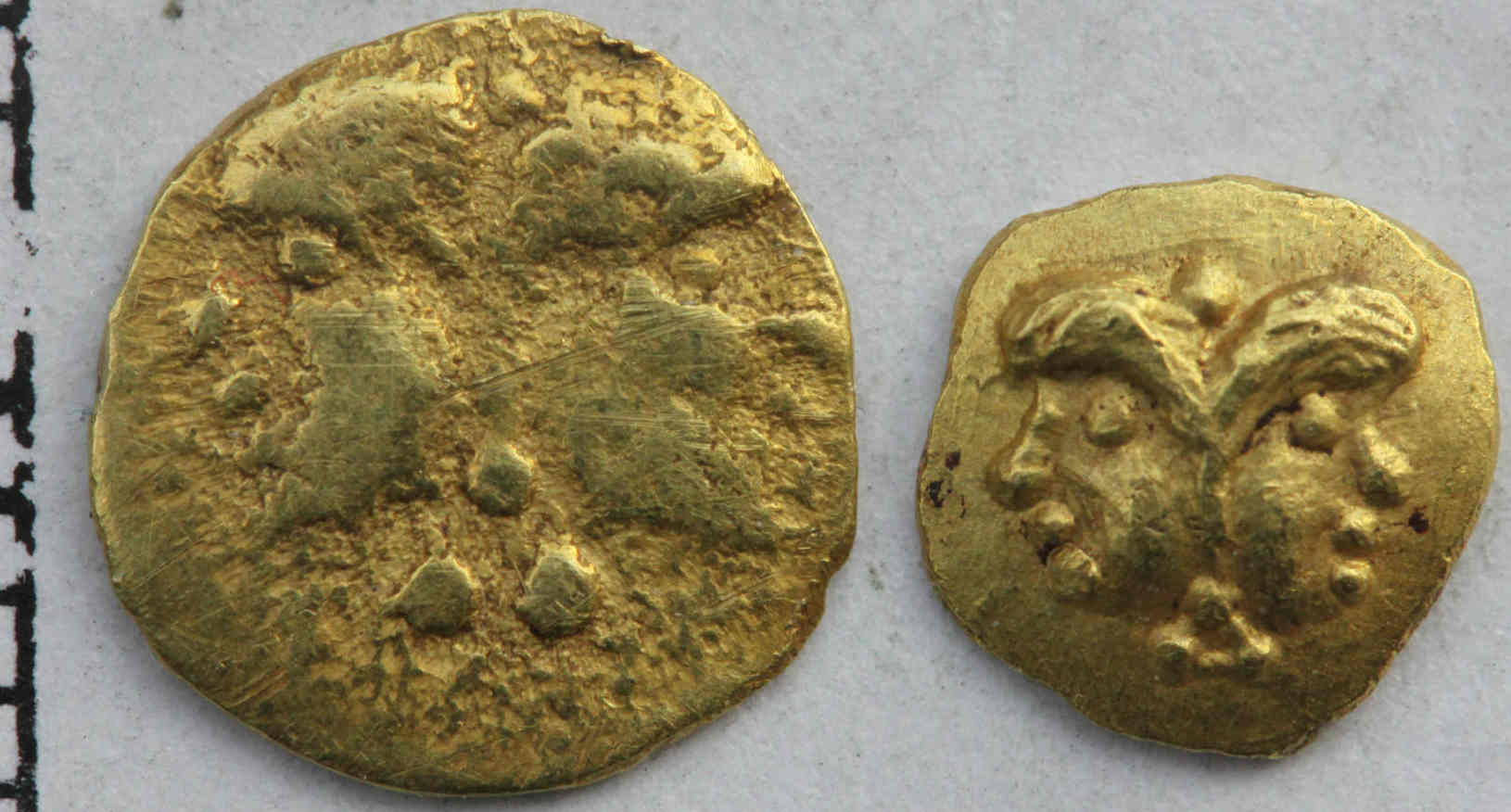 Ich habe auch so einen 1/24-Stater, damals, 2010, fuer 1400€ erworben. Ich gehe auch von einer Faelschung aus. Bei Kuenker wird das eigentlich schoen erklaert. Die Muenzen auf dem Fund-Foto moegen verglichen mit modernen Muenzen nicht perfekt zentriert sein, aber verglichen mit keltischen Muenzen sind sie das und sogar alle. Ich finde auch die Haeufung von nur mit zwei exzellenten Stempelpaaren gepraegten Muenzen unglaubwuerdig, wo dann auch noch Muenzen von typisch abgenudelten Stempeln seltener sind.