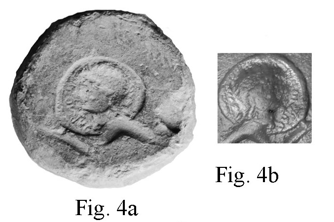 Bleischeibe mit Abruck des Vorderseitenstempels eines Denars des Dumnorix: