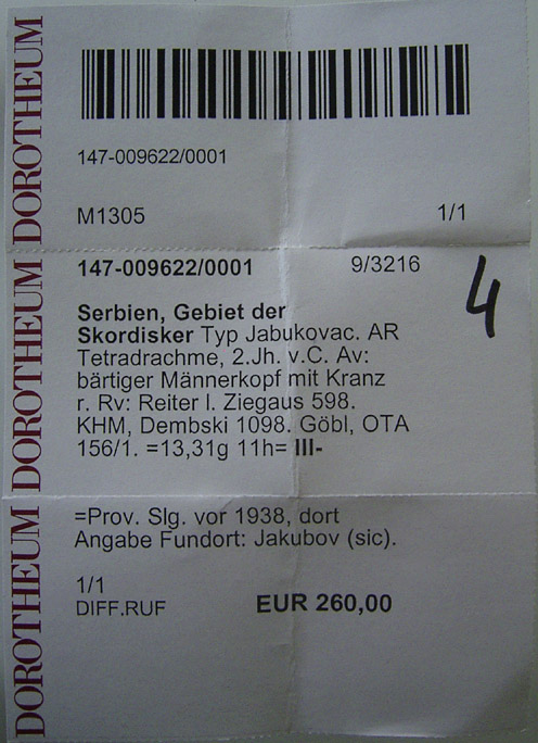 Sei dem, wie ihm wolle. Insgesamt gab es vier Münzen vom Typ eckige Nase in der 'alten deutschen Privatsammlung', und Lanz hat damals auch eine vierte verkauft (Auktion Ende: 24. Mär. 2012 21:02:46 MEZ):