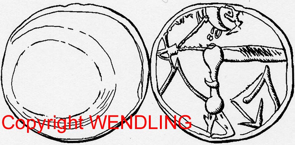 Dieses keltische Kleinsilber ist aus mehreren Gründen Interessant. Es handelt sich dabei um eine äußerst seltene Imitation der boischen Goldmünzen des Typs Athena- Alkis. Diese Prägungen zeigen in der Regel eine nach links laufende Athena mit Speer und Schild, welche von den keltischen Stempelschneidern zu einem Krieger umgeformt wurde. Die hier vorgestellte Münze imitiert nochmal diese Nachahmungen und zeigt einen stark barbarisierten Krieger nach rechts , welcher in seiner linken Hand einen Schild hält und die Rechte anhebt. Auf die Abbildung des Speeres in seiner Rechten hat der Stempelschneider hier verzichtet. Die freien Felder sind mit mehreren keltischen Symbolen ausgefüllt. Der Avers zeigt einen Männerkopf nach links mit gewelltem Haar und fliehendem Kinn. Für diese Aversdarstellung gibt es so gut wie keine Vorbilder. Der Zustand dieser Münze ist stempelfrisch. Provenienz: Lanz 86,8, 1998