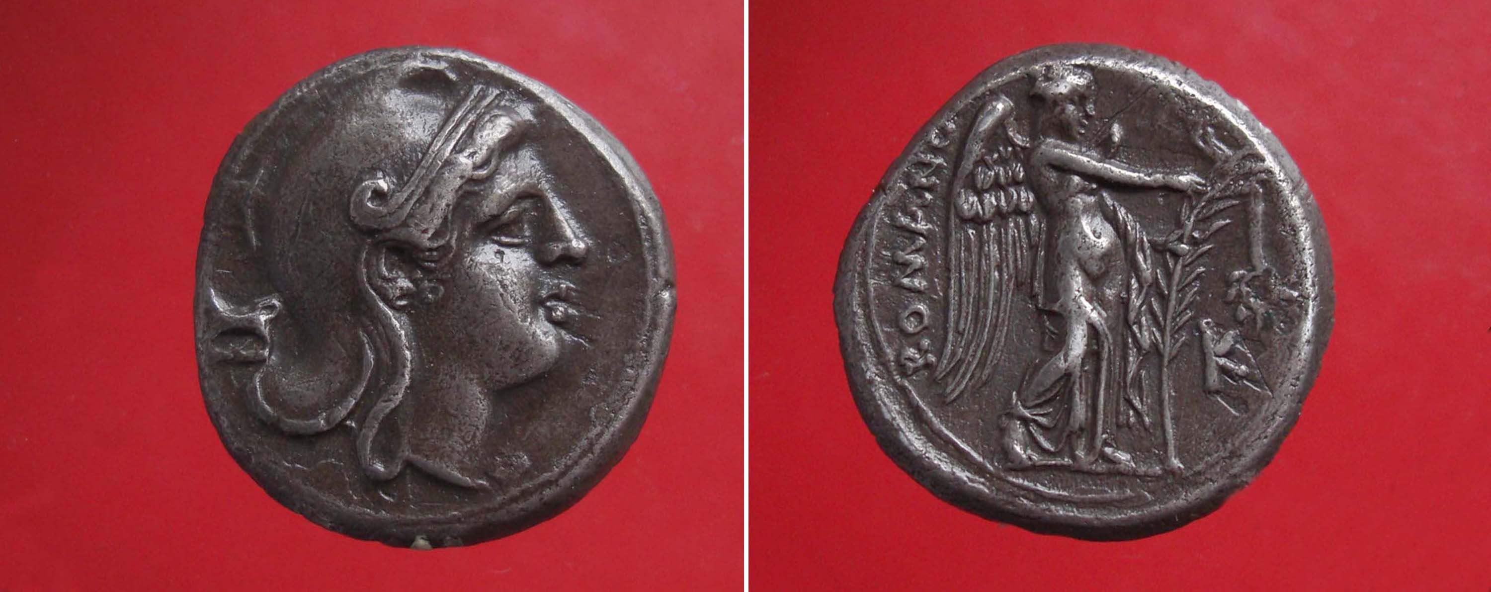 Das Aversbild ist eine Umformung der röm. kampanischen Didrachme.
