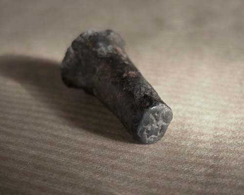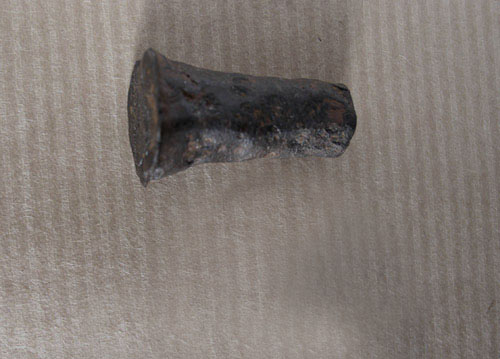 Wie man an der breitgeschlagenen Schlagfläche gut erkennen kann, wurde der Prägestempel offenbar wiederholte Male nachgeschnitten und verdankt diesem Umstand wohl seine geringe Länge.