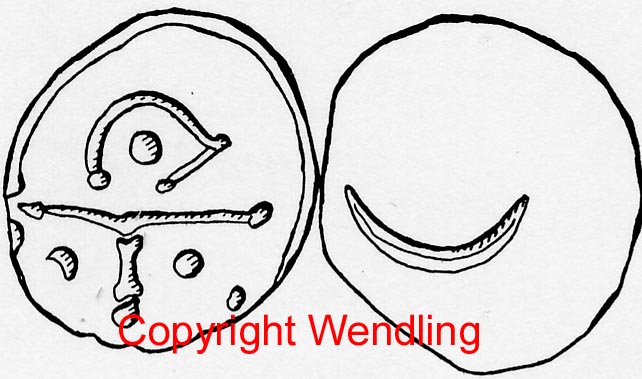 Bei diesen Silbermünzen ist der Avers ein stark abgesetzter Buckel und der Revers ein äußerst stark stilisierter Krieger.