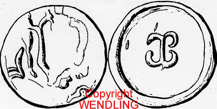 (Kellner Wallersdorf, S. 11, Abb. 2, Nr. 15 und S13, Abb. 3c) diese variieren jedoch in der Form des Reversbildes, wo anstelle der Halbbögen Querbalken mit Punktabschlüssen zu finden sind.