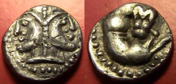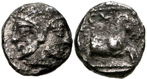 PS.: Nachfolgend zwei Beispiele für griechische / quasi-griechische Kleinsilbermünzen aus Kleinasien (leider nur keine Entsprechung zu Deiner):