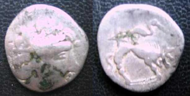 http://www.celtic-coin-agora.com/23.MonnaiesCeltes.CopyrightEdgaretJoeleWENDLING.htmIch schaue zuhause nach, ob in den bereits publizierten Tafelbänden die Zeichnung ist. Von der Beschreibung her "Löwe mit stark stlisiertem Kopf" und "Kranich über dem Rücken des Löwen" bzw. dem Gewicht könnte es passen.