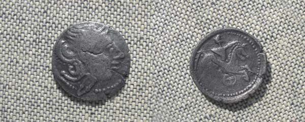 Die Artemisbüste kommt auf thrakischen Tetradrachmen des Typs Makedon- Protes in ähnlicher Ausführung vor (OTA 601). Die Schrötlingsform und Metallzusammensetzung haben Parallelen bei den keltischen Drachmen mit Artemiskopf aus Rumänien (OTA 279) Das radförmige Beizeichen kommt häufig bei den skordiskischen Prägungen Serbiens vor.