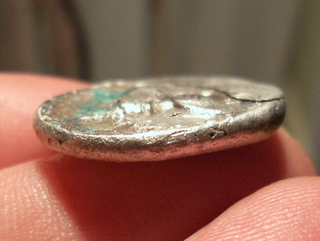 Der Fundort ist so viel ich weis Kärnten, es muß daher ein Noriker sein, es sei den in der Antike hat jemand diese Münze von ausserhalb nach Kärnten gebracht? Der Silbergehalt scheint sehr gut zu sein (denke ich mal wegen dem schönen glanz, wie eine Schatzmünze, liegt wunderbar in der Hand) und es fällt auf das die Form eher Oval ist aber trotzdem der Winkelkreis sehr genau der Münzform entspricht. Ref: hinter dem Reiter über dem Pferd ist ein kleiner Kreis mit einen Punkt, der Kopf des Reiters scheint kein Kugelkopf zu sein, die Haare sehen eher wie zacken oder Sterne aus.