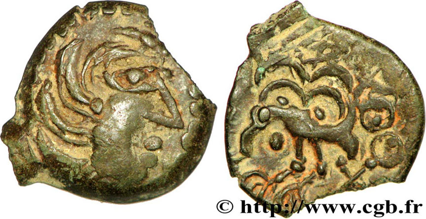 Münzen wie die Deine wurden bei regulären archäologischen Grabungen in einem Heiligtum in der Flur "Grèves" bei La Villeneuve au Châtelot, in großer Zahl in Gruben gefunden, die in die Zeit nach Caesars gallischem Krieg datieren. Sie kommen aber schon bei Gresigny in einem Zusammenhang vor, der in die Spätphase des gallischen Kriegs datiert.