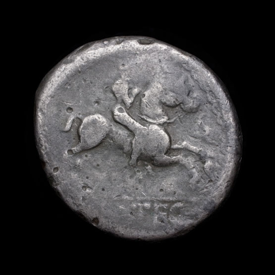 Diese Hexadrachme sieht auch aus fast der gleichen Werkzeugen gemacht werden - man beachte die Fahrer den rechten Arm vor ihm und Blatt zwischen Pferd Kopf und Beine: