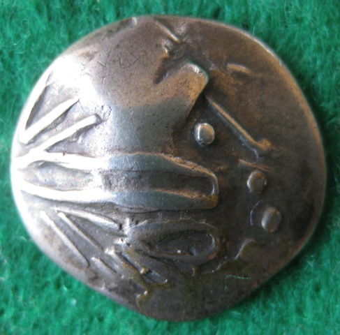 Ich habe hier ein Sattelkopfpferd, 7,25 gr. Bei den Stücken, die ich bisher gesehen habe, sind wenigstens 2 oder 3 Punkte als Andeutung des Reiters über dem Pferd; bei meinem Stück fehlen sie. Ist das nun noch eine weitere Stufe der Abstraktion?