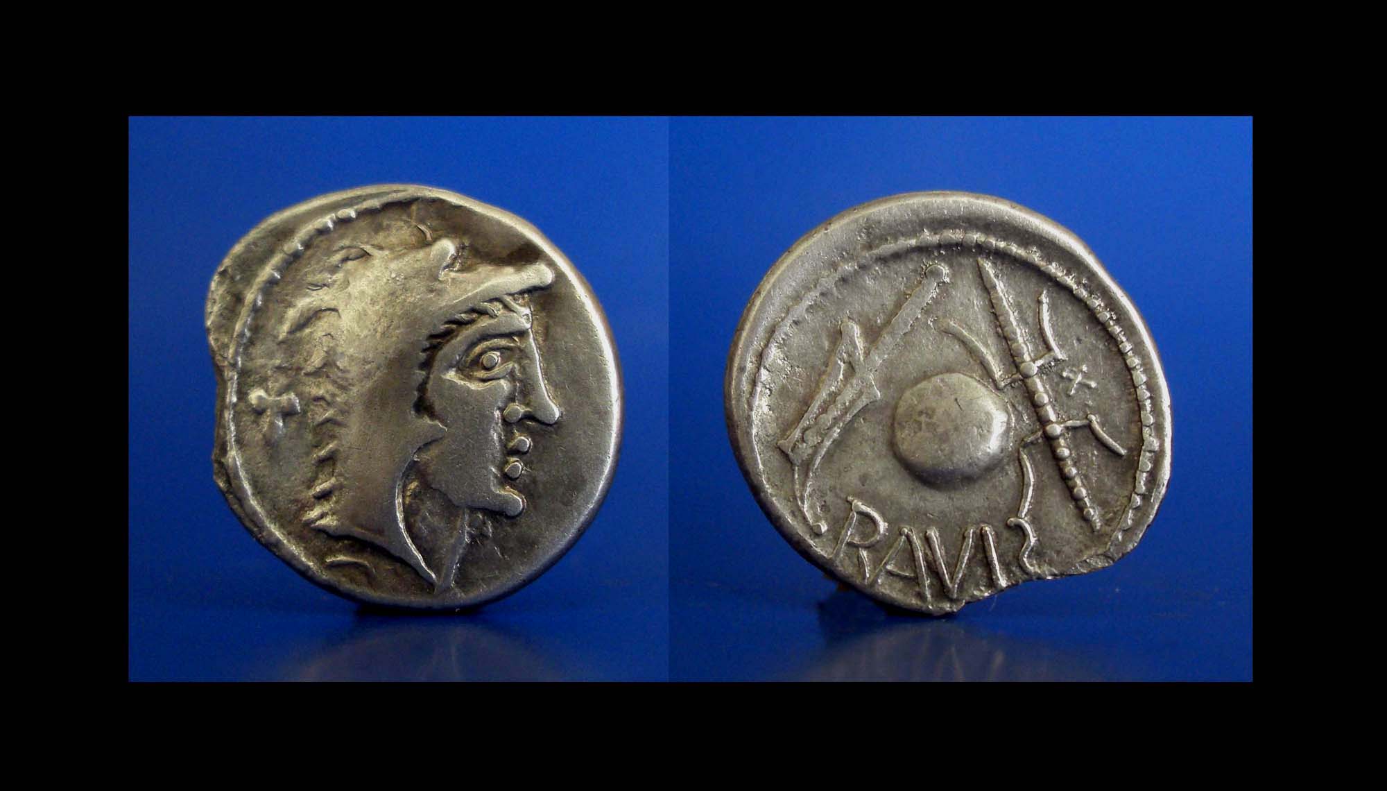 Eravisci, Denar nach Vorbildern des Cn. Lentulus Marcellinus (Cr 393) und des P. Crepusius (Cr 361)