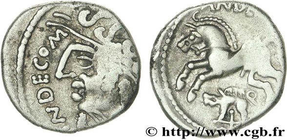 Laut Louis-Pol Delestrée & Marcel Tache, Nouvel Atlas des monnaies gauloises II. De la Seine à la Loire moyene (Saint-Germain-en Laye 2004), S. 130 f. und Taf. XXIII gehören diese Münzen zu einer Serie von Geprägen, welche sowohl Goldmünzen (Halb- und Achtelstatère) als auch die von taurisker vorgestellten Bronzemünzen mit Adler (DT 2582) umfasst, unter anderem auch Halb- und Achtelstatere mit Legende ( ATIIVLOIB u. SOLIM.YC (1/2-Statere) bzw. SOLIM.YC (1/8-Statere)), demzufolge datieren sie relativ spät (Endphase des Gallischen Krieges - Zeit vor Augustus). Der vorliegenden Münze entspricht am ehesten DT 2570.
