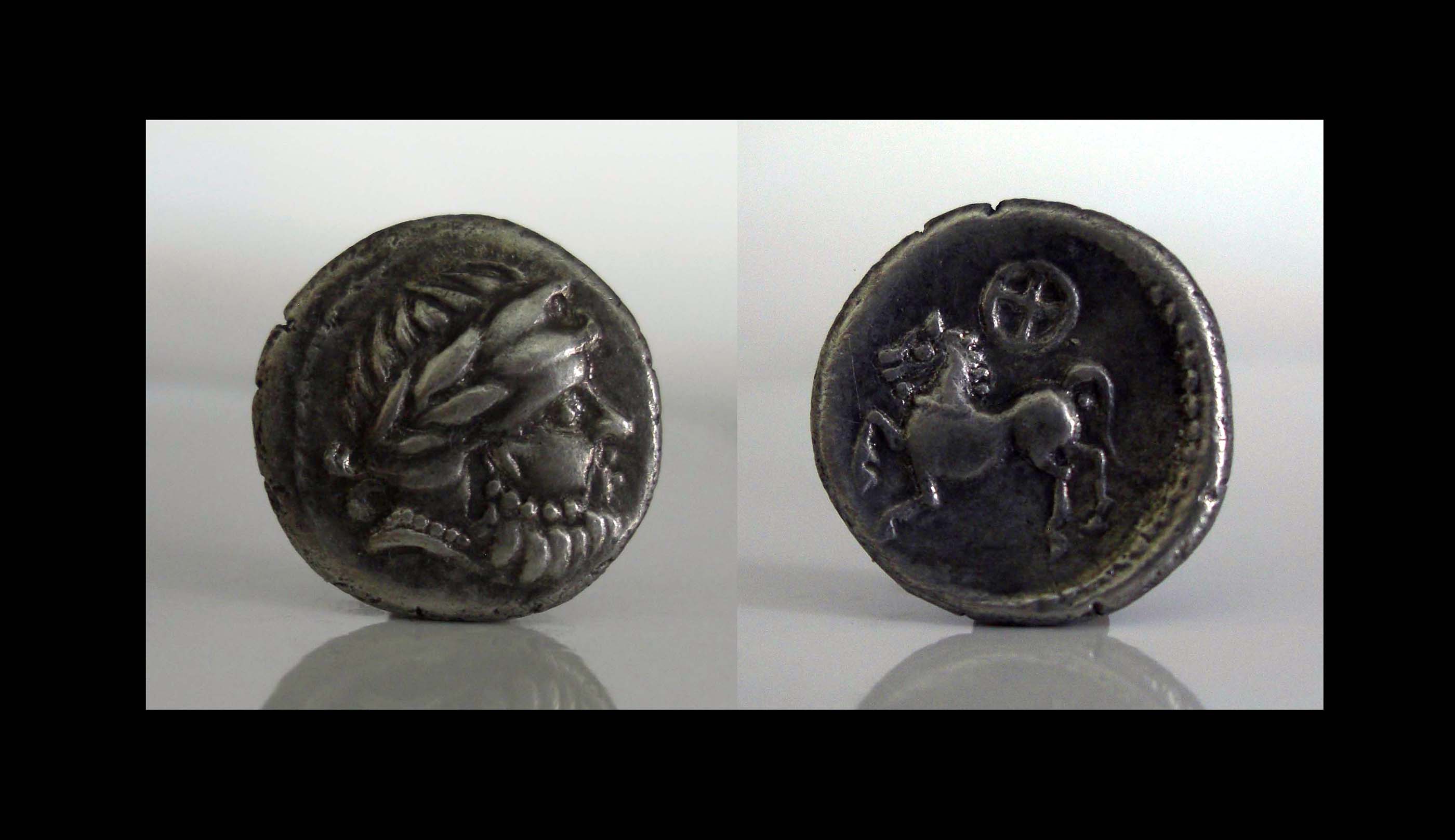 Für das Bild auf der Rückseite findet sich im Bereich der skordiskischen und auch der gesamten ostkeltischen Prägungen keine direkte Parallele.