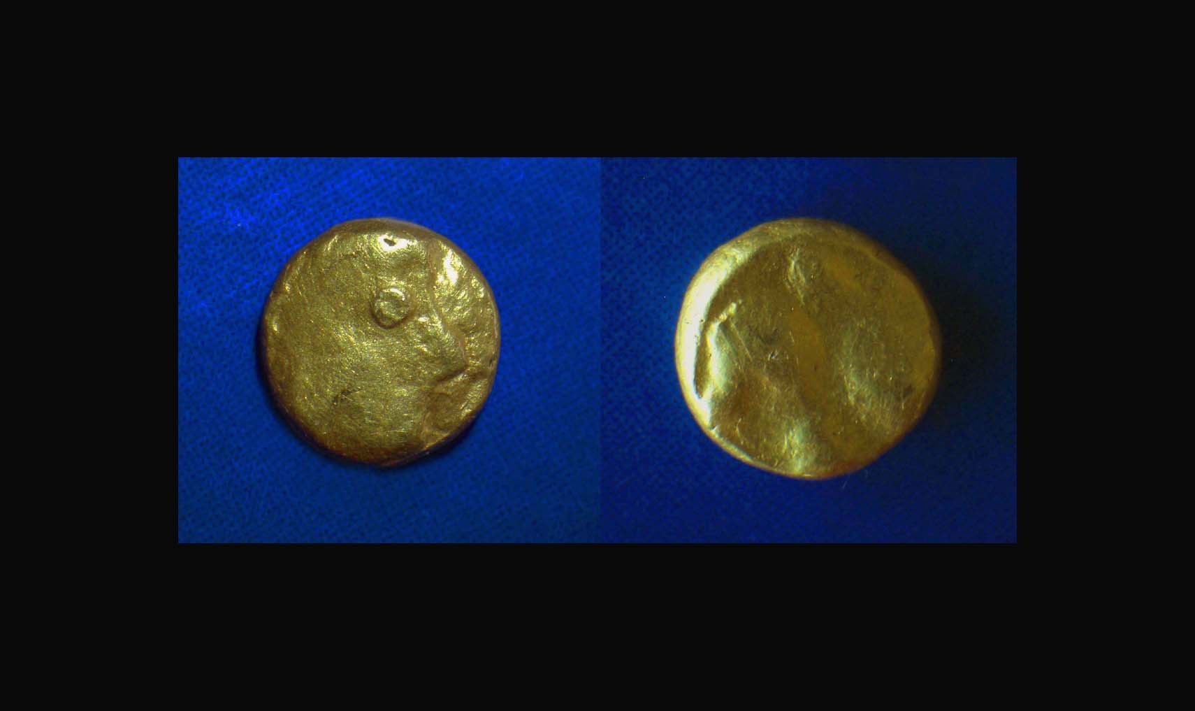 Im Zuge einer archäologischen Grabung wurde im Jahr 1972 als ältestes numismatisches Zeunis dieser Siedlung ein kleiner Schatzfund von sechs keltischen Goldmünzen geborgen, welcher sich in einem Bronzebehälter in Beutelform befand. In diesem Bronzebehälter, der große Ähnlichkeit mit heute noch in Ungarn von Hirten verwendeten ledernen Gelbörsen aufweist, wurden neben 2 Exemplaren dieses Typs noch folgende weitere Goldnominale gebogen: