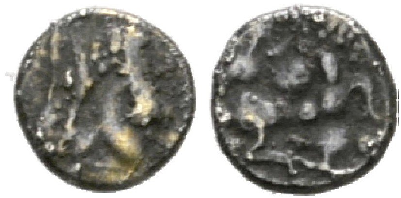 Zwei Exemplare von 1/24 Stateren des Typs Androkephales Pferd, Variante Manching B