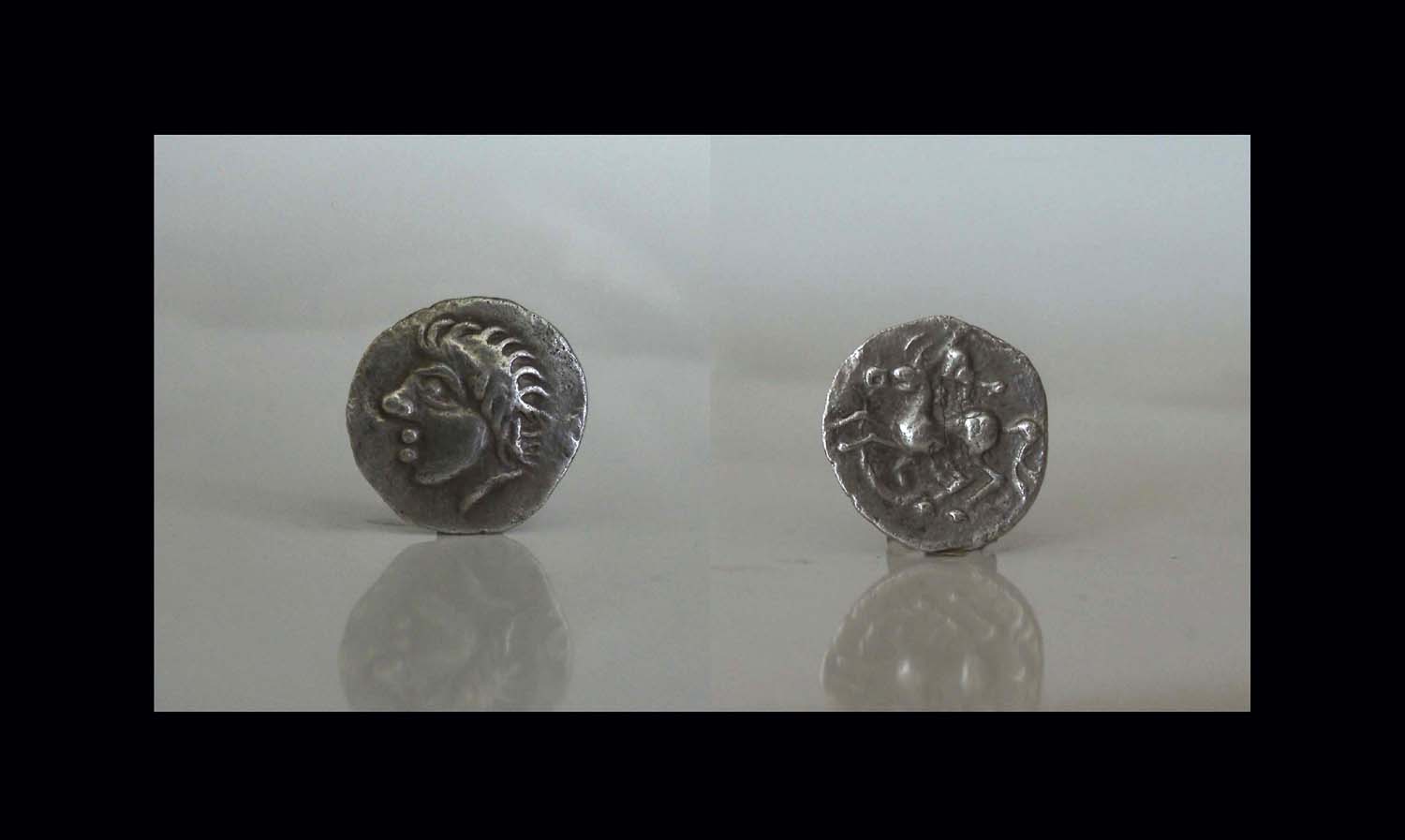 Ein weiters Beispiel mit ähnlich gestaltetem beißendem Tierkopf findet sich bei einer Sondervariante von Tetradrachmen des Velemer Typs.