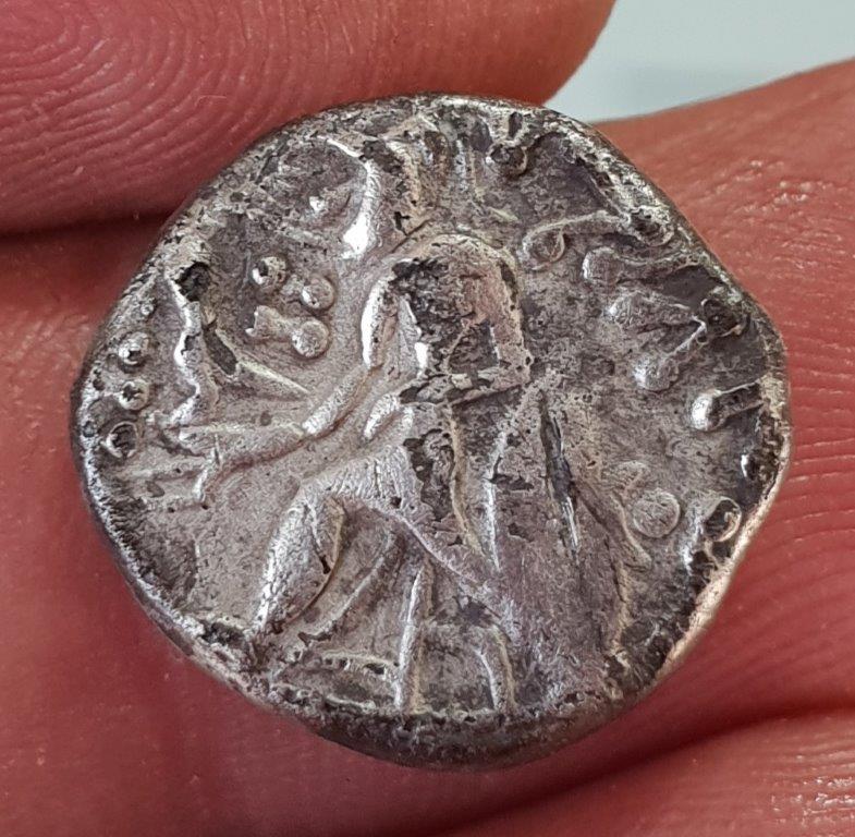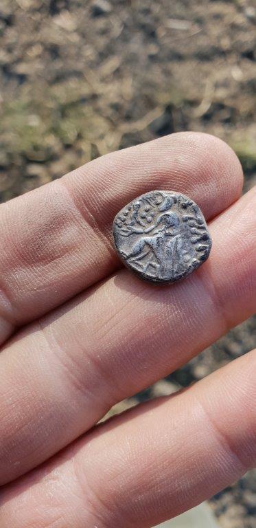 Besonders interessant bei deinem Exemplar ist der in der Hand hehaltene Adler, der ansonsten nur von Darstellungen des sitzenden Zeus bekannt ist und der Rest der Scheinlegende am Rand.