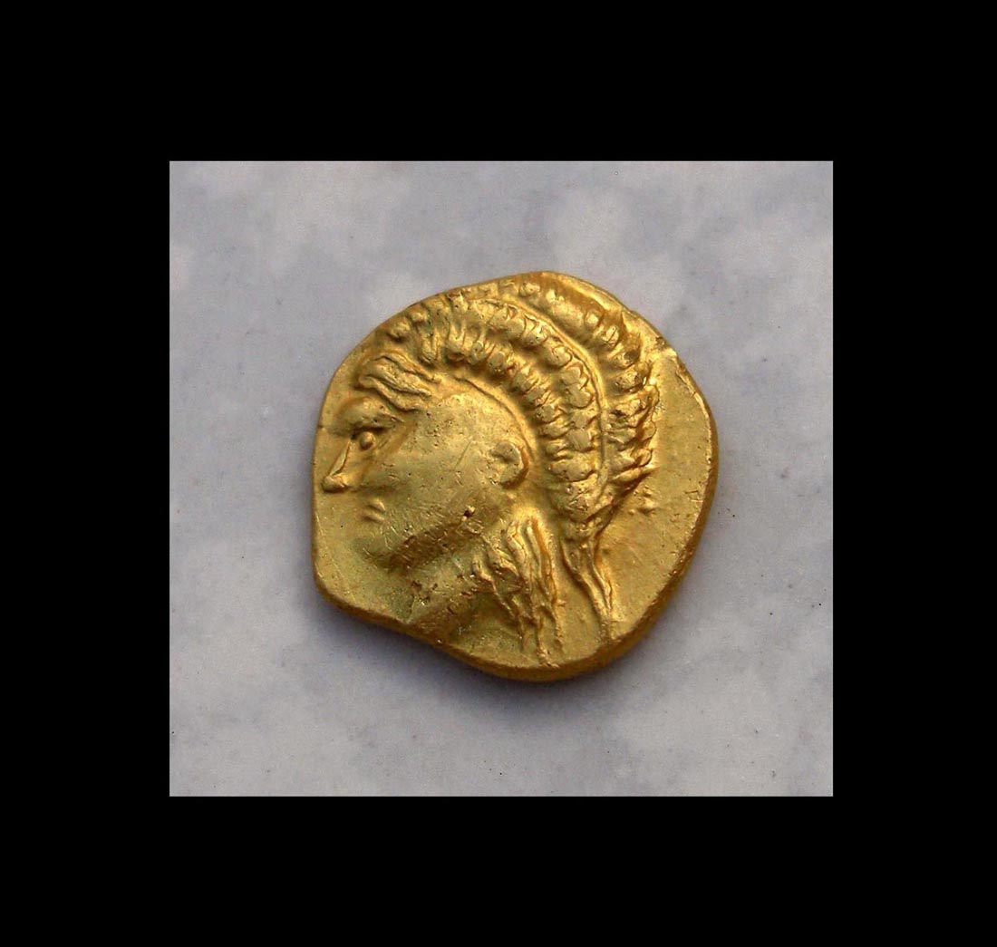 Ich kenne kaum ein anders derart ausdrucksstarkes Portrait bei den Kelten und gehe davon aus, dass hier sogar möglicherweise ein griechischer Stempelschneider als "Gastarbeiter" tätig war.
